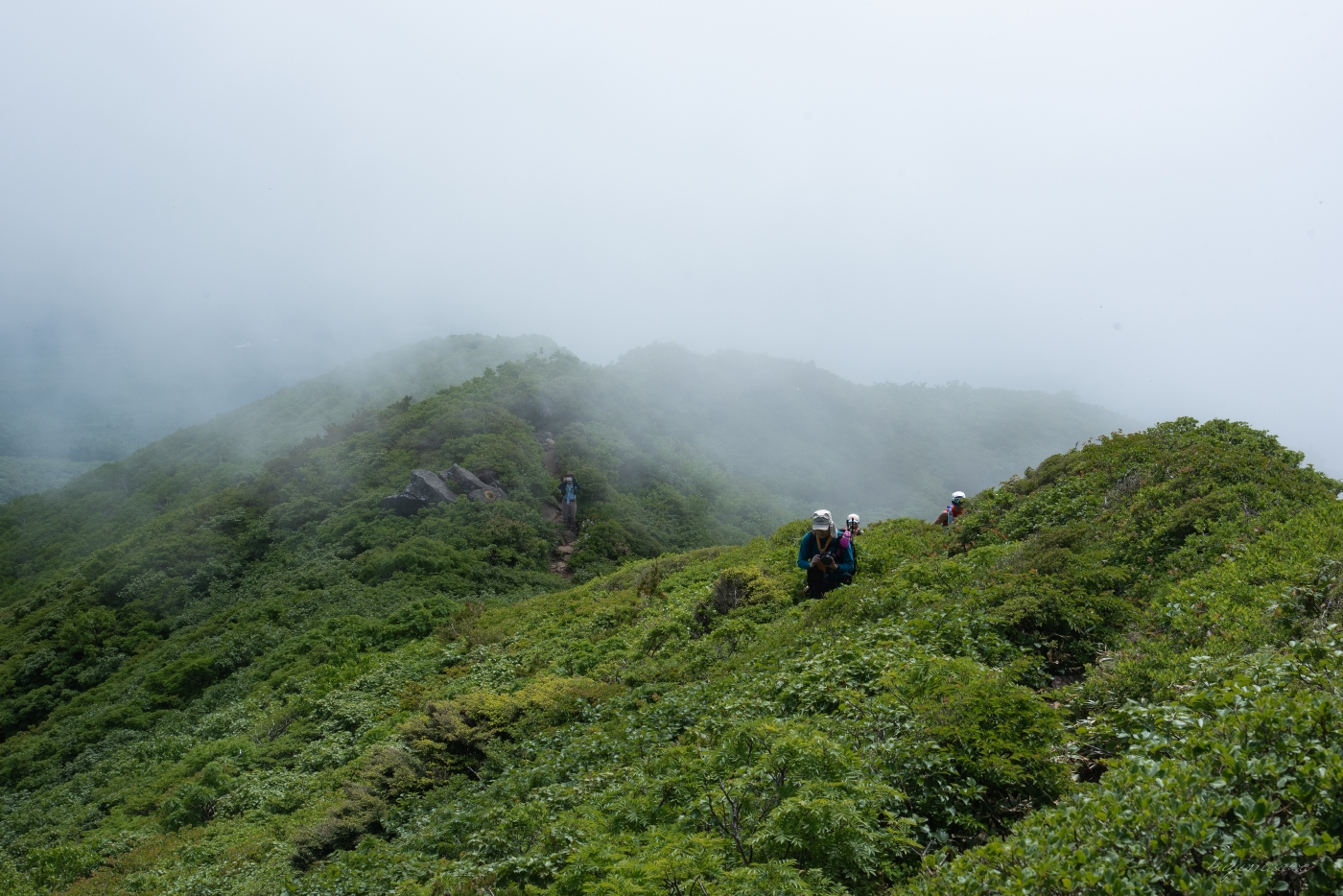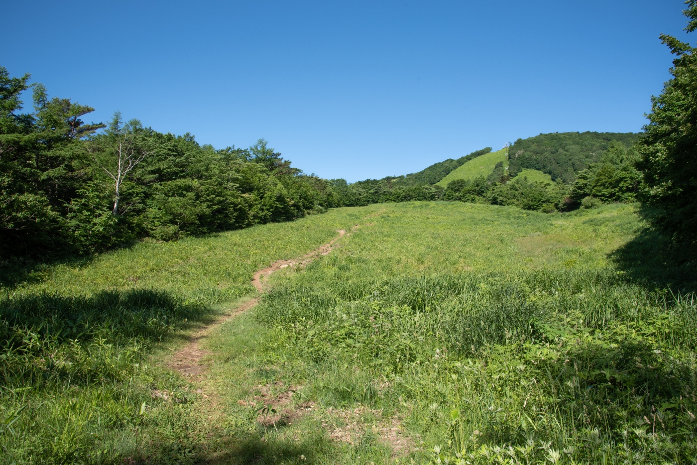 気持ちのいい稜線、鋭鋒「不忘山」に伸びるトレイルを進んでいきます。