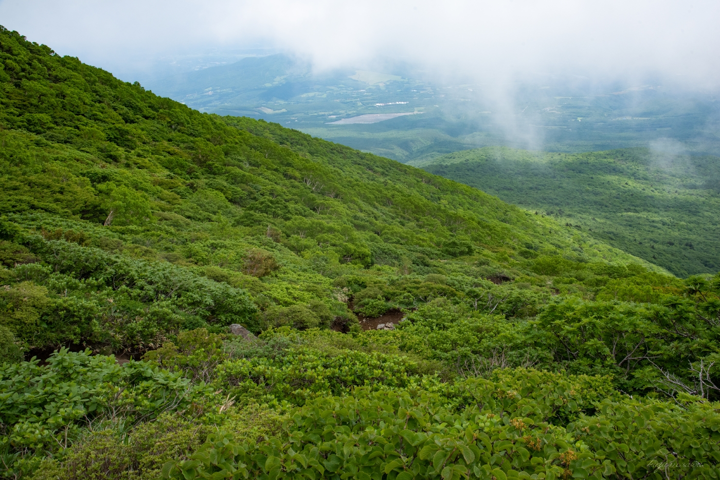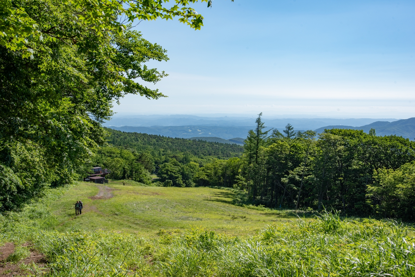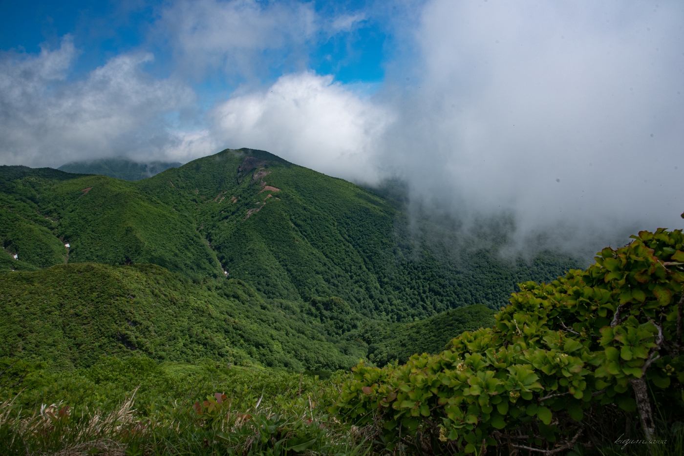 南蔵王の鋭鋒「不忘山」、山頂から眺める南東に広がる美しい裾野と北西に伸びる屏風岳の稜線。