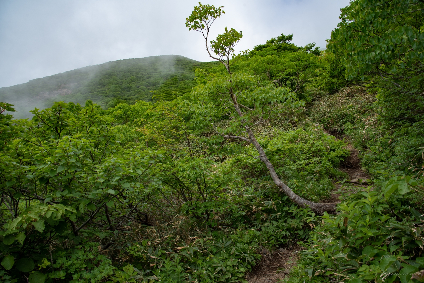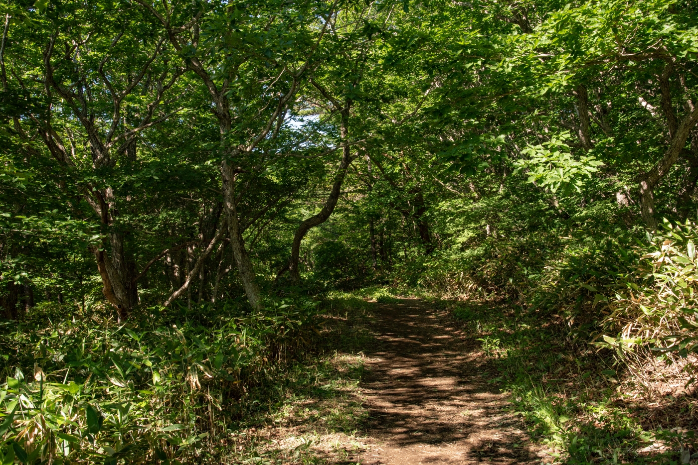 スキー場のゲレンデを抜けると、しばらくは退屈な樹林帯歩きが続きます。
