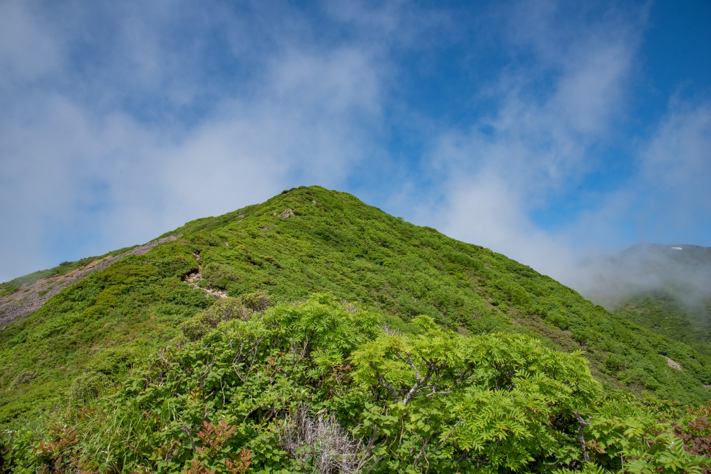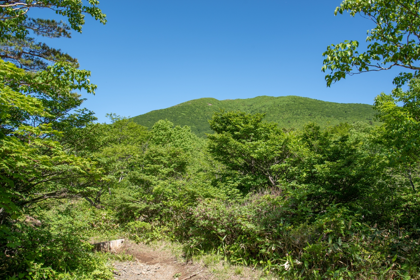 スキー場の脇の急登を抜けると、不忘山の山体が目の前に広がった来ました。