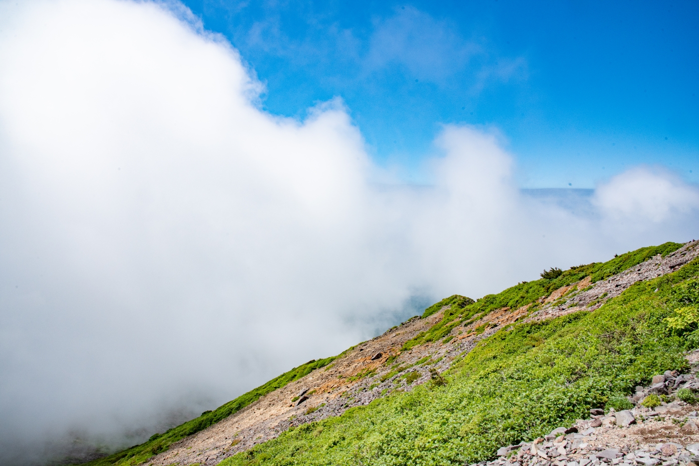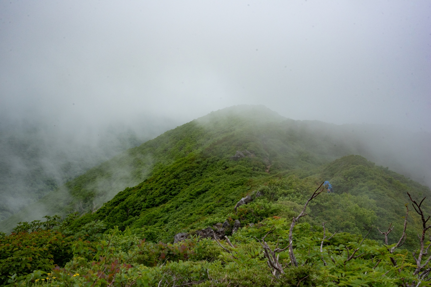 稜線に出た時、一気にガスが出てきたのでこれはもうだめだとあきらめていたのですが、また持ち直してくれるとは!!