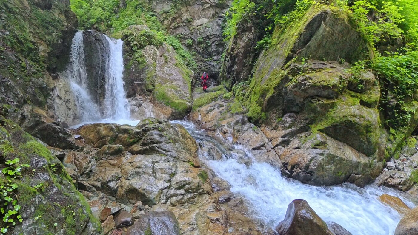 ようやく楽しくなってきた。滝は8mくらいの落差だろうか。