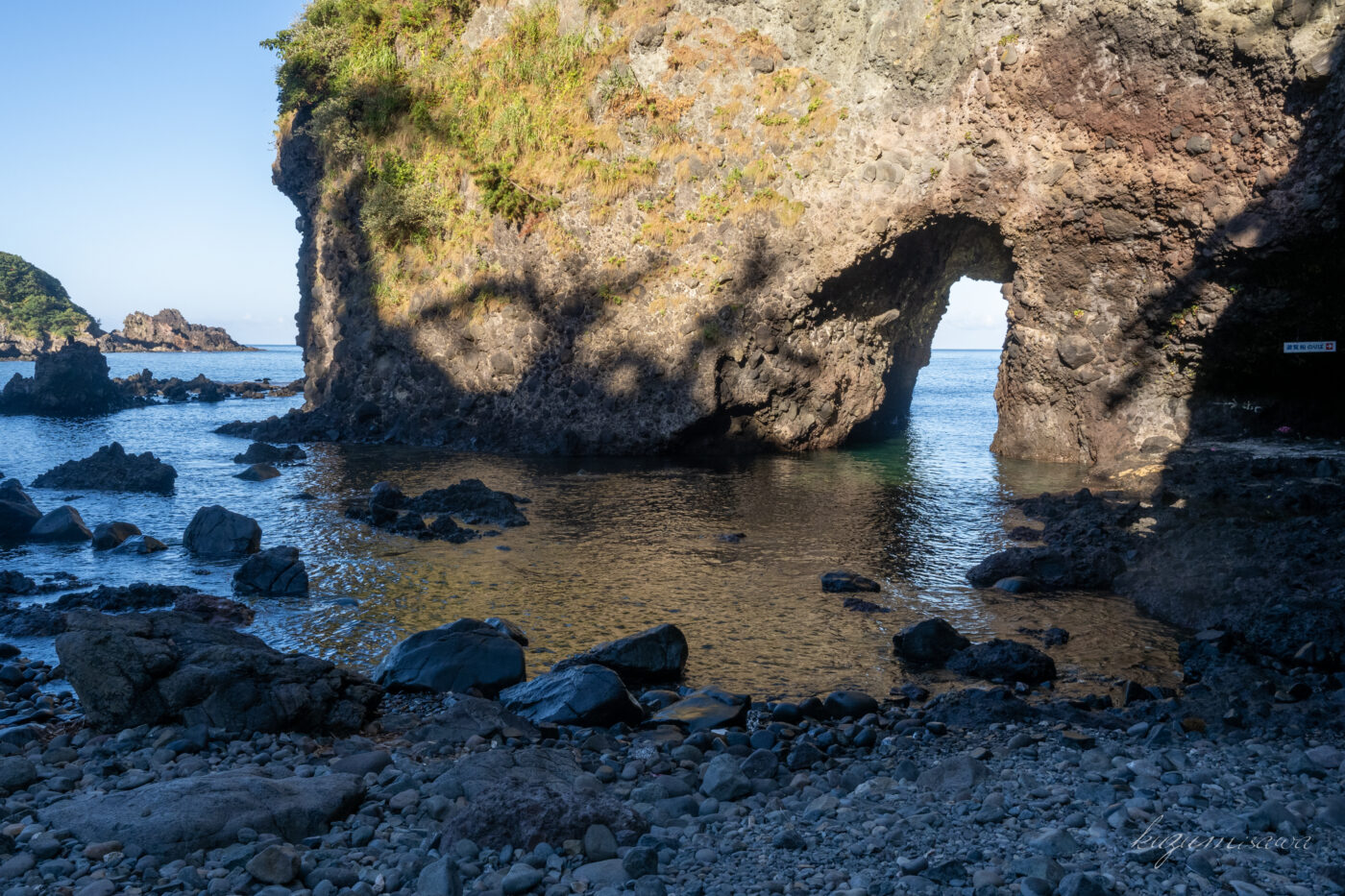 千里浜から輪島に向かう途中に能登金剛と呼ばれる景勝地の「巌門」に立ち寄った。