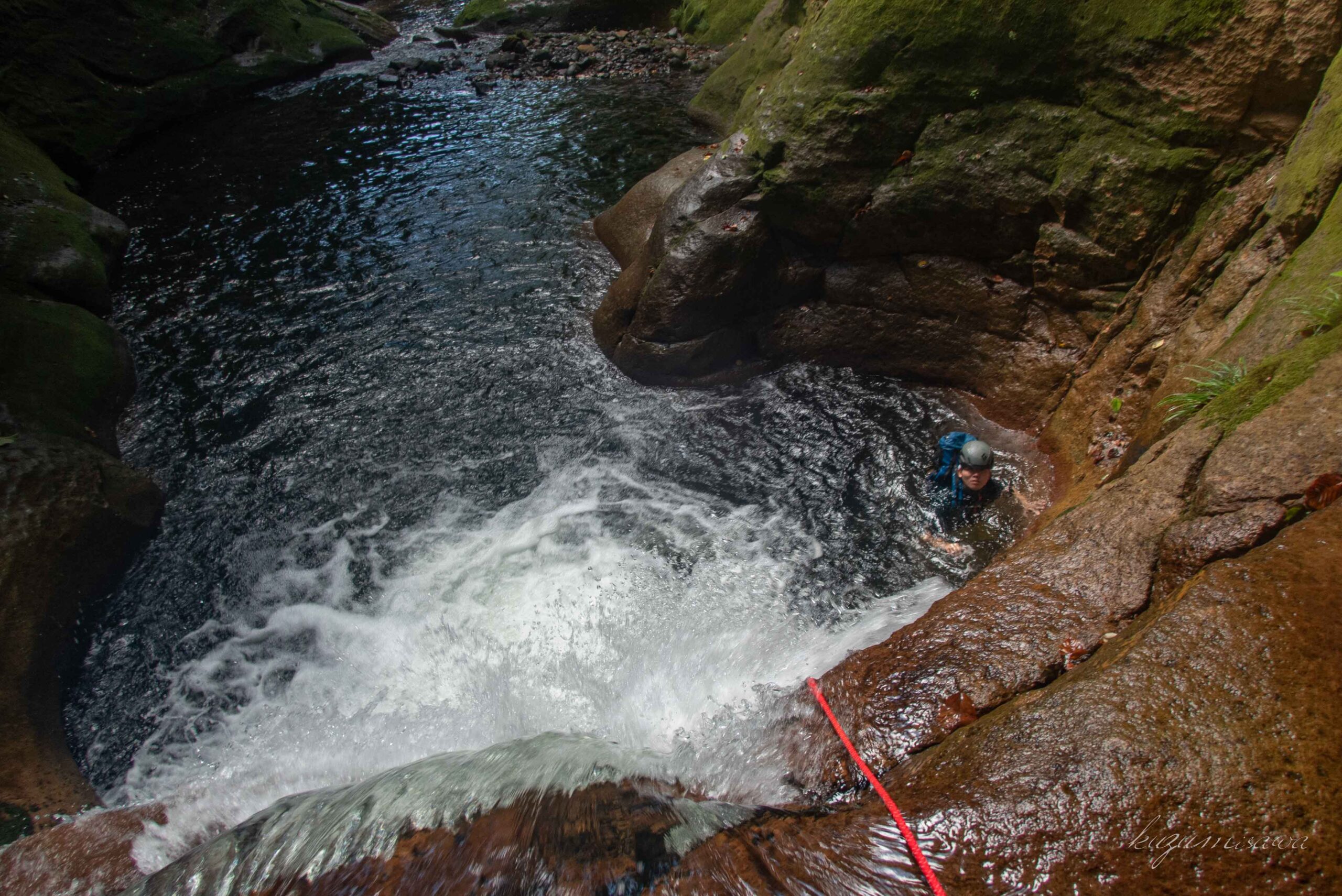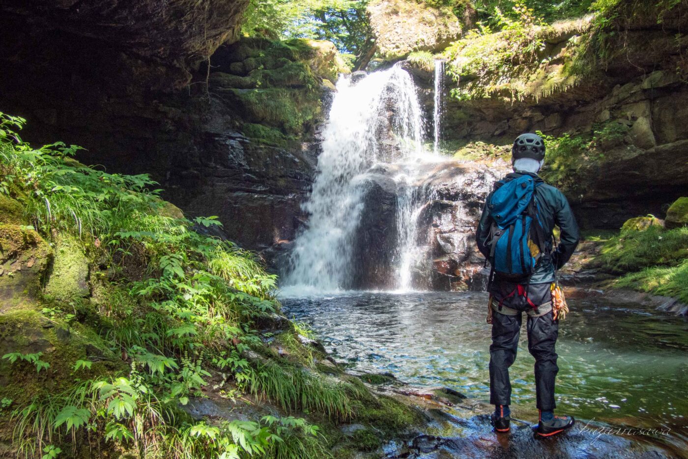下部ゴルジュは長くは続かず、最後は4mほどの滝が出て終了となる。