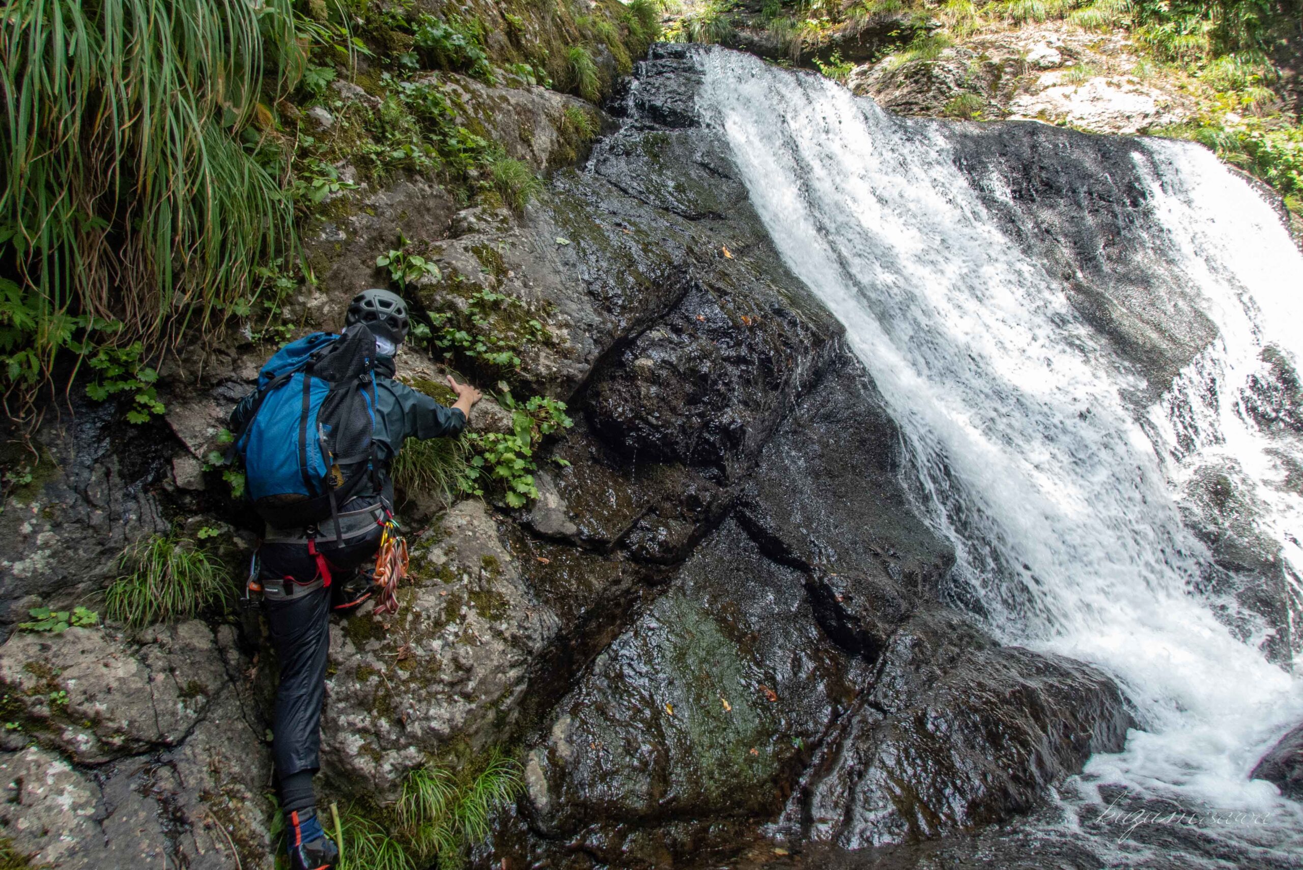 この滝は取り付きの足場が分かりづらいが水流左から登ることが出来る。