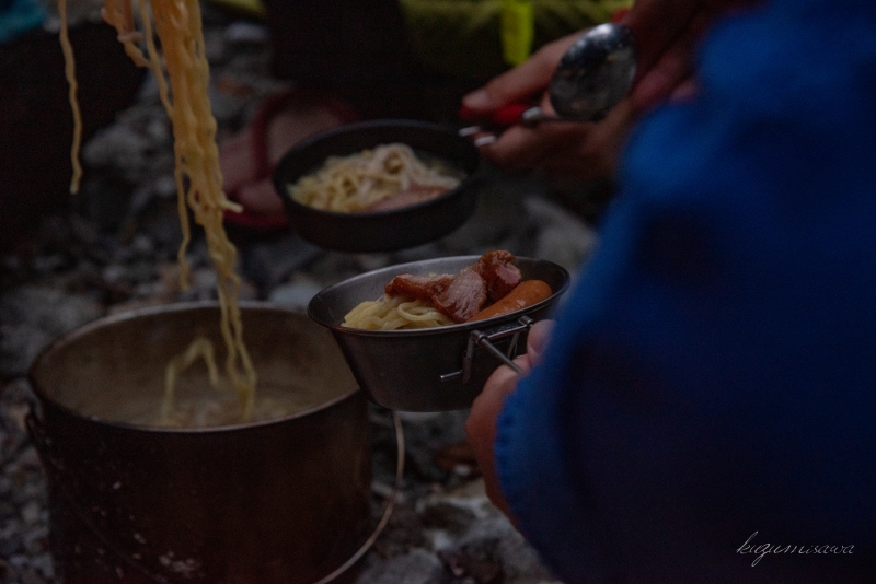 焚火で体を乾かしながら、ナルゲンボトルに入れてきた焼酎を飲む。