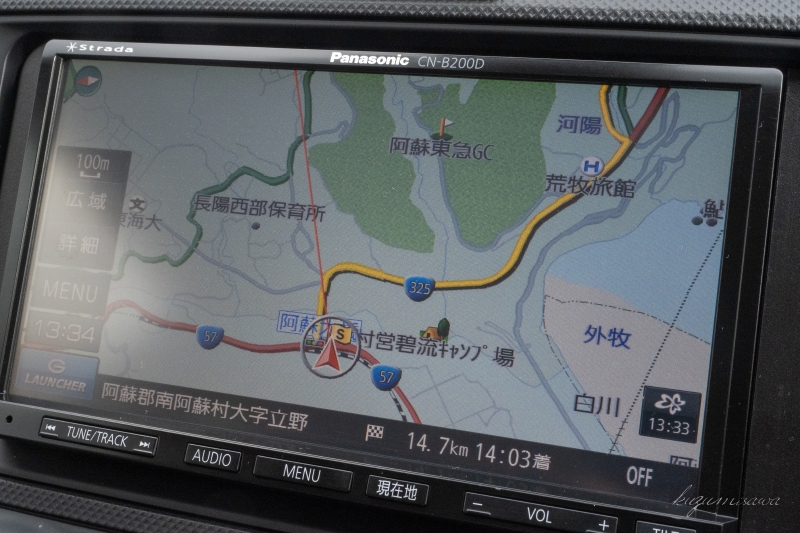レンタカーの古いナビでは旧阿蘇大橋を通れと案内される。