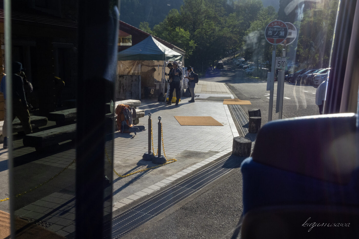 白山ではマイカー規制のため別当出合まではシャトルバスを使用することになる。