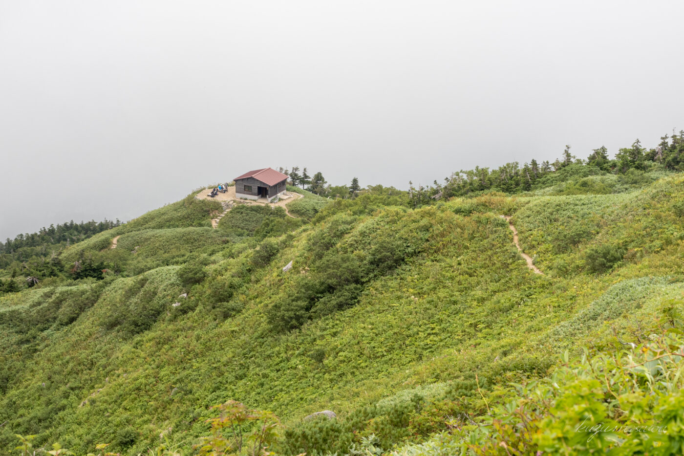 甚之助避難小屋に到着。すでに標高は2000m近く、森林限界も近づいてきた。