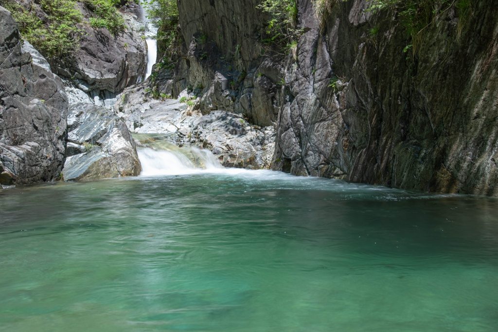 しっかりと滝で遊んでいたら、太陽の位置も高く上がり、釜に光が入ります