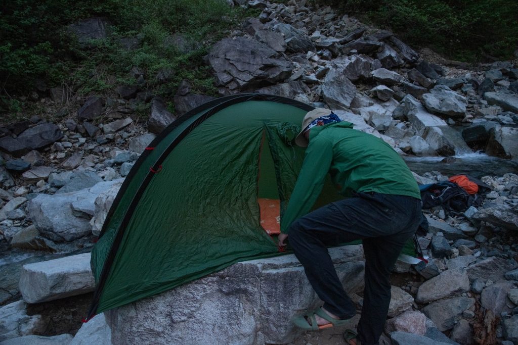 ・ウメコバ沢まで戻り、F4前のテン場にて就寝