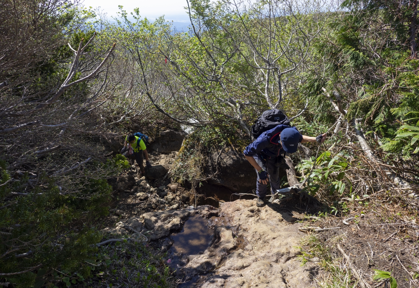 東北地方の森林限界は役1,600mほどと言われていますが、1,000mくらいでもだいぶ木々の身長が低くなります。