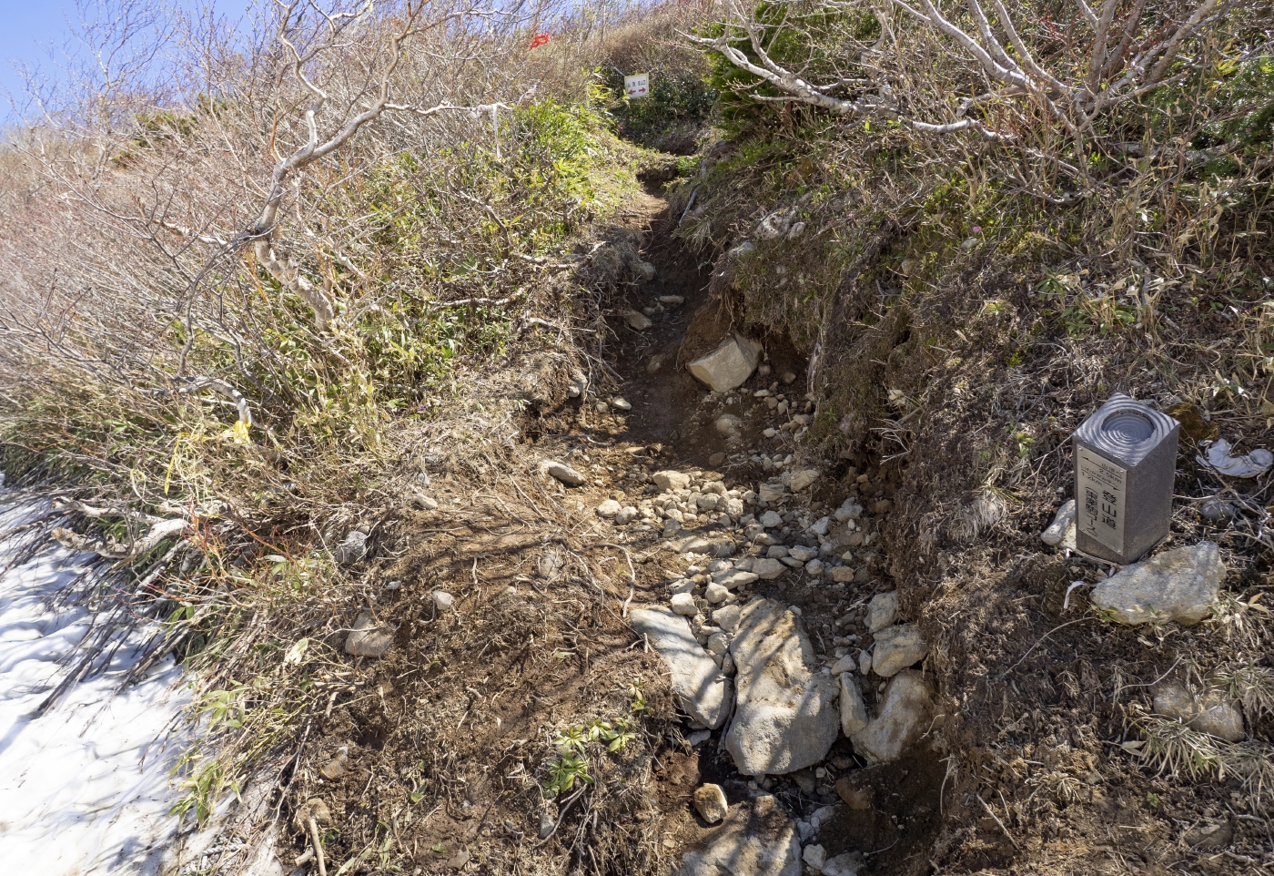 雪渓を少し戻ったところに東栗駒コースが続いていました。