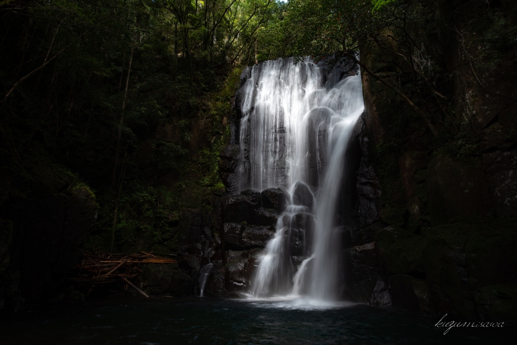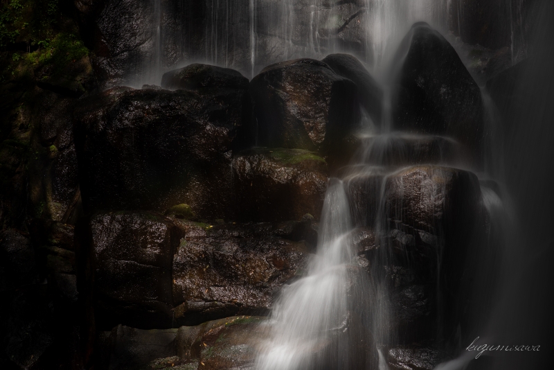 幅広の堤防のような滝であるが、岩盤の変化にも富んでおり流身を目で追っていても楽しい滝だ。