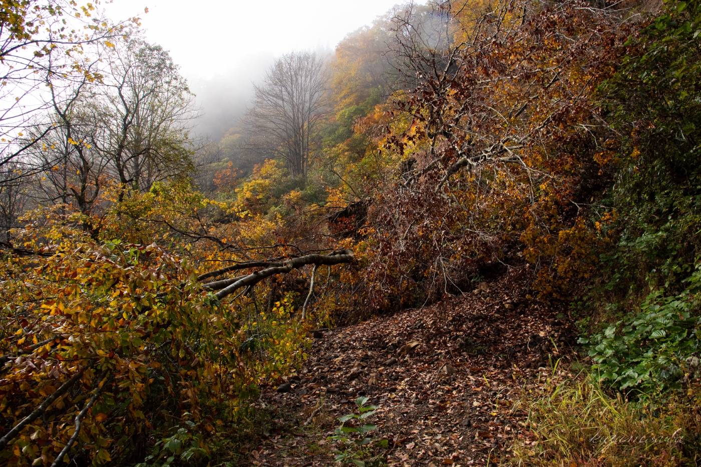 駐車場から先の道は落ち葉と土砂崩れでかなりグズグズになっているので注意が必要です。