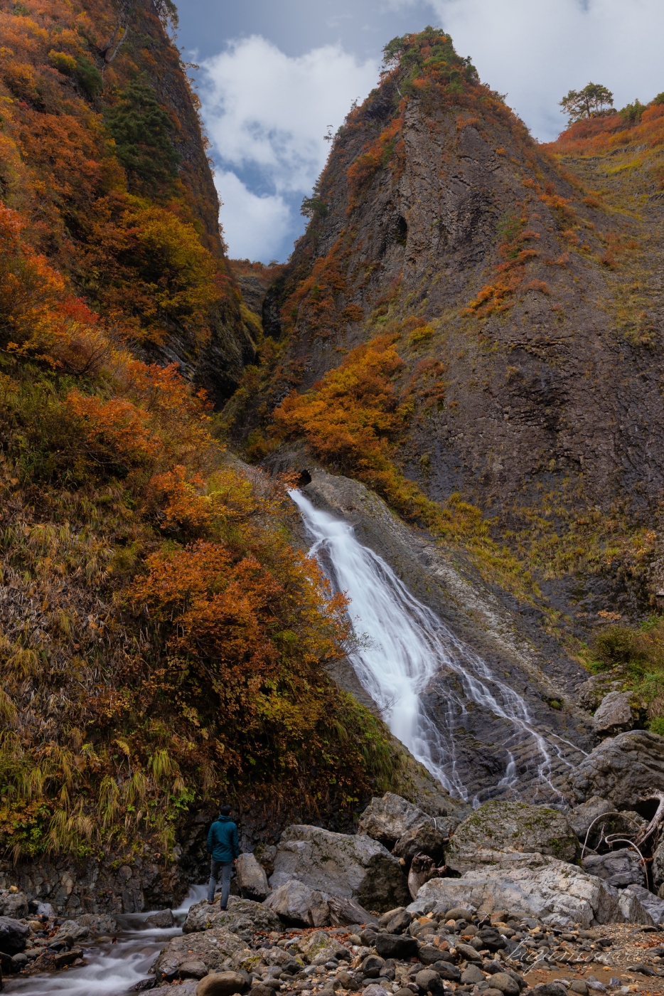 落差は65mの記述や100mの記述もありはっきりとしたものがありませんが、これは上流がゴルジュの連瀑帯になっているからではないでしょうか。