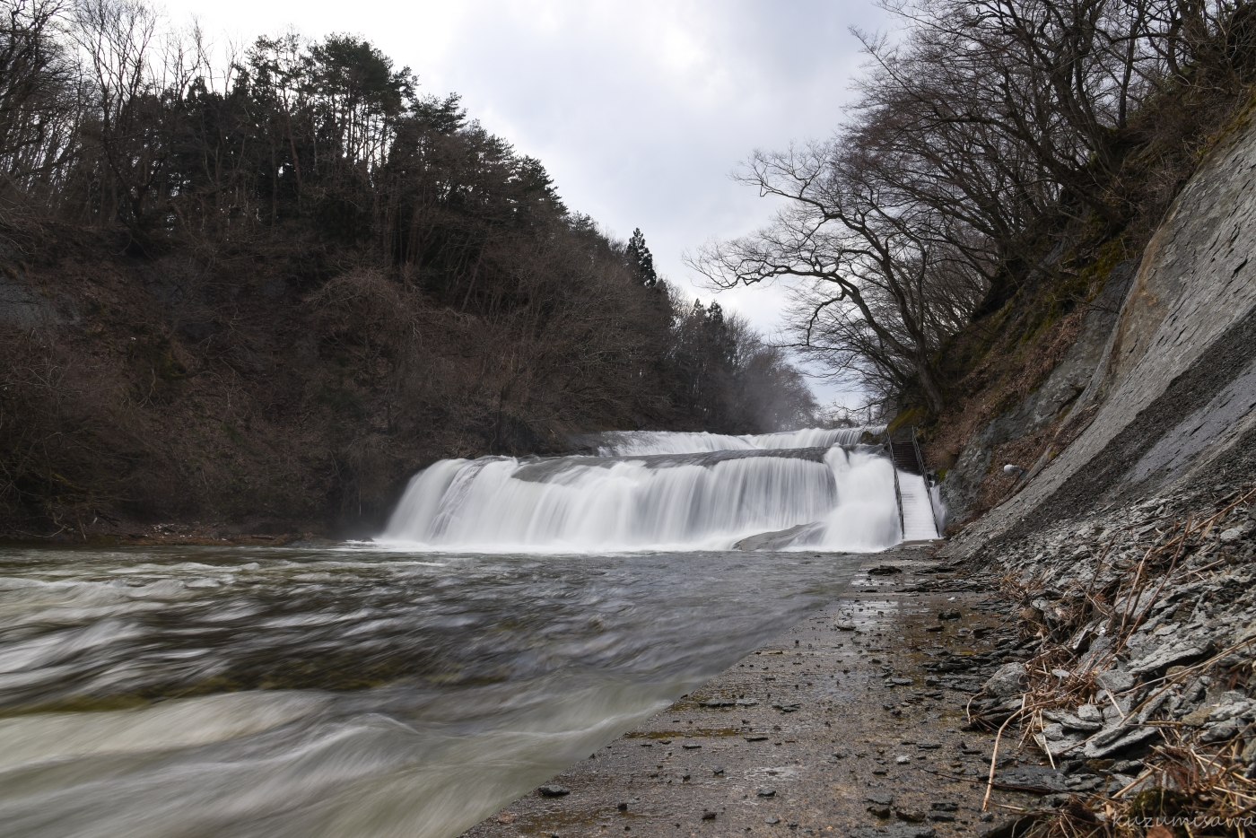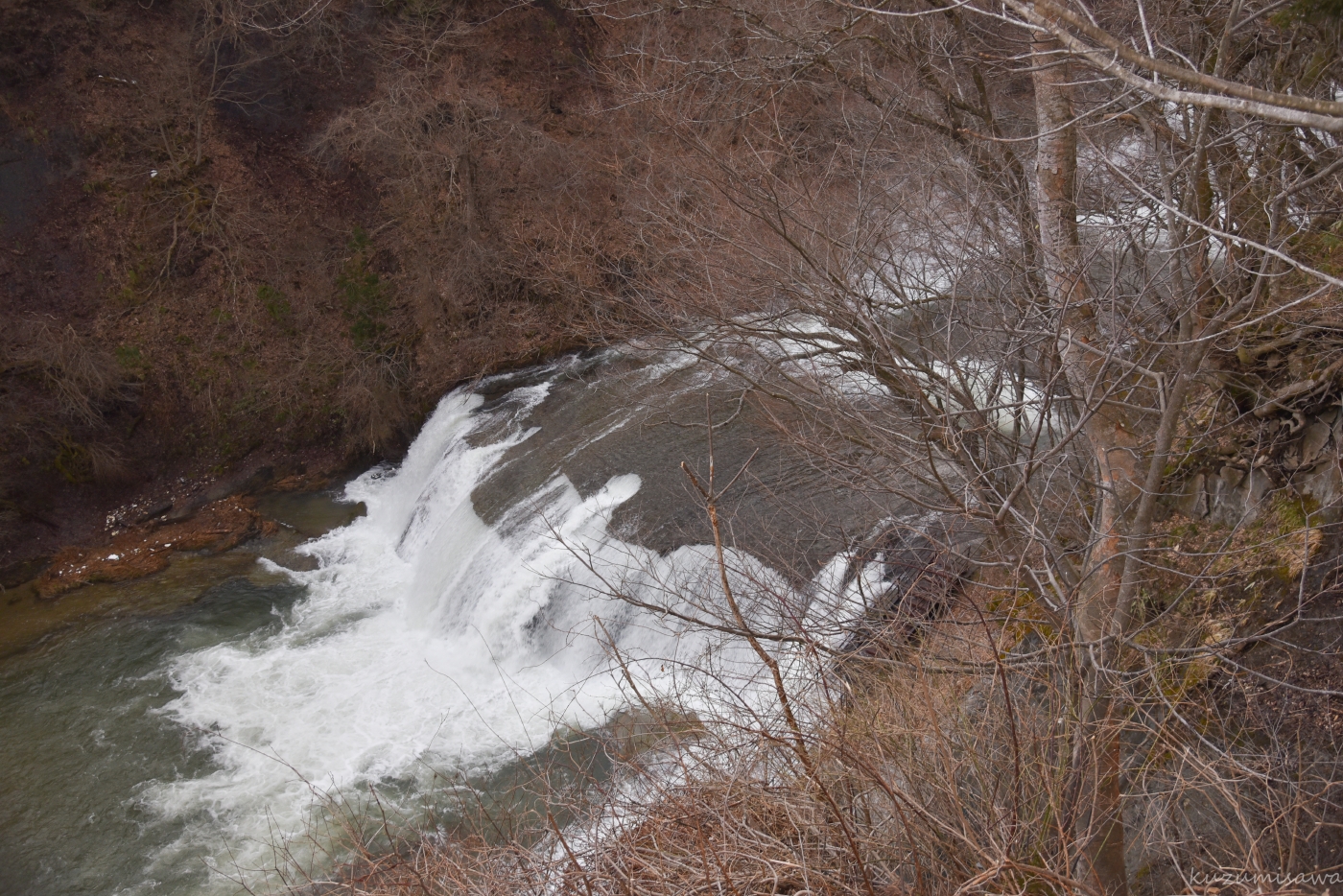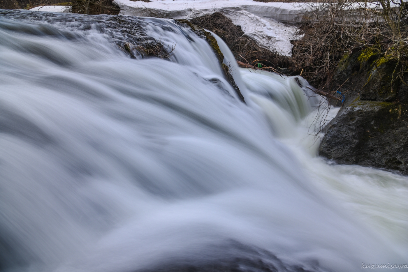 夏には滝で水遊びをする地元の子供たちの姿も見えるのですが、この日は肌寒く、水量も多いので人気はありません。