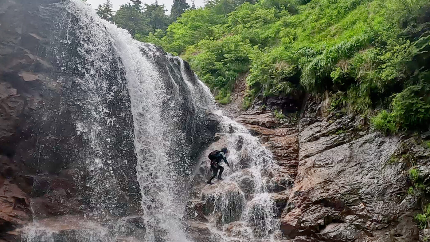 滝を登れてかなり喜んでいる後輩。初々しい姿におじさんも沢を始めたあの日を思い出した…。