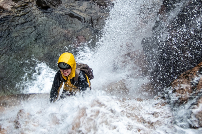 日が雲に隠れ少し寒いが、それでも飛沫を浴びながらの滝登りは何よりも楽しい!