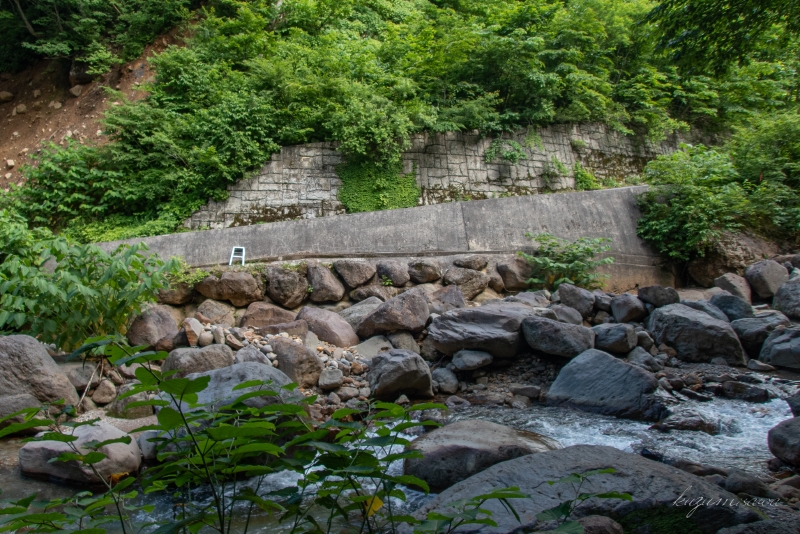 一度間違えて滑川温泉の吊り橋まで行ってしまったが、そこからさらに下流に向かい渡渉。