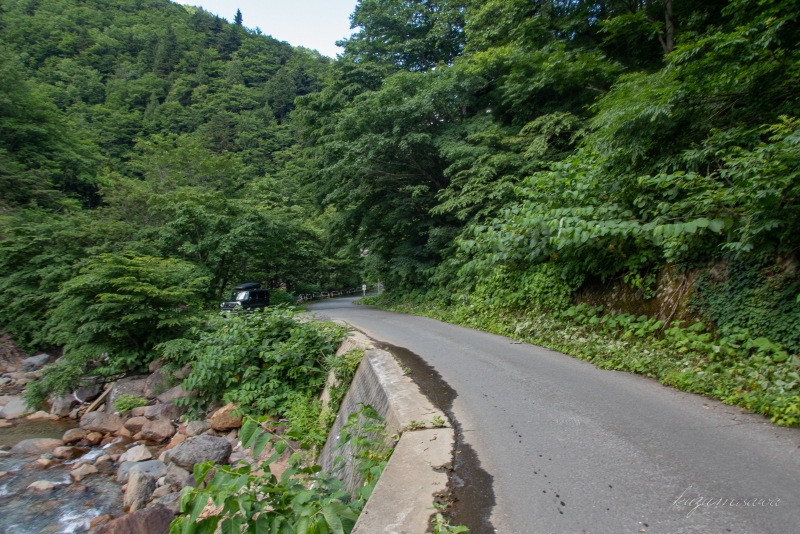 滑川温泉手前の路側帯に車を停め、準備を整える。