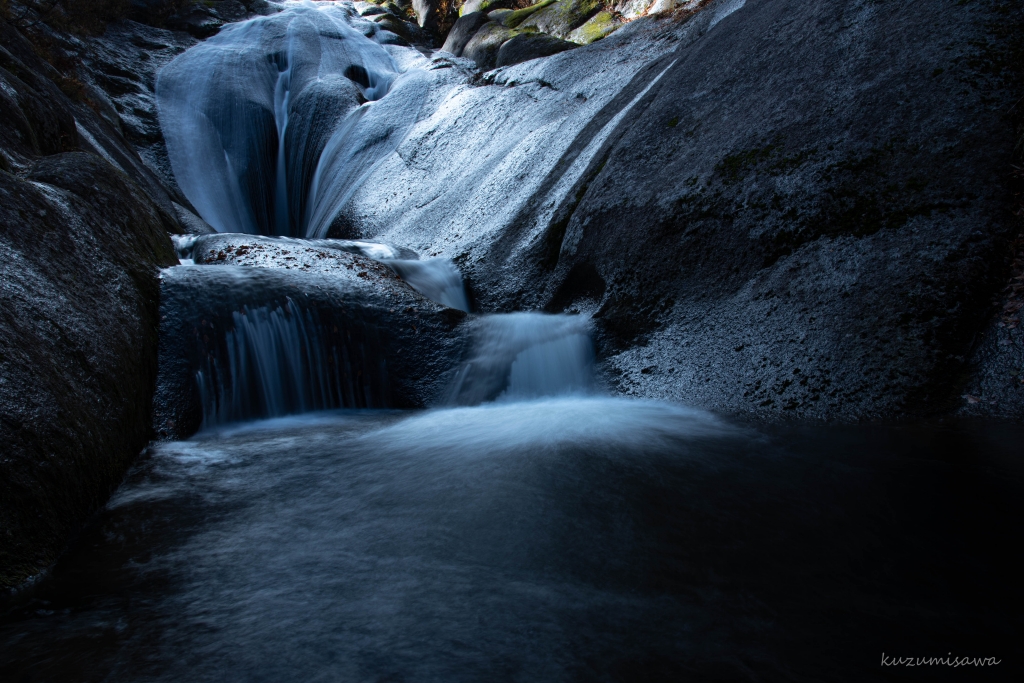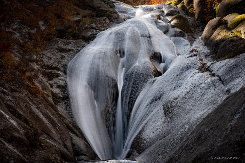 安の滝と同じく「溶結凝灰岩」が美しい流水で磨かれ完成した分岐瀑