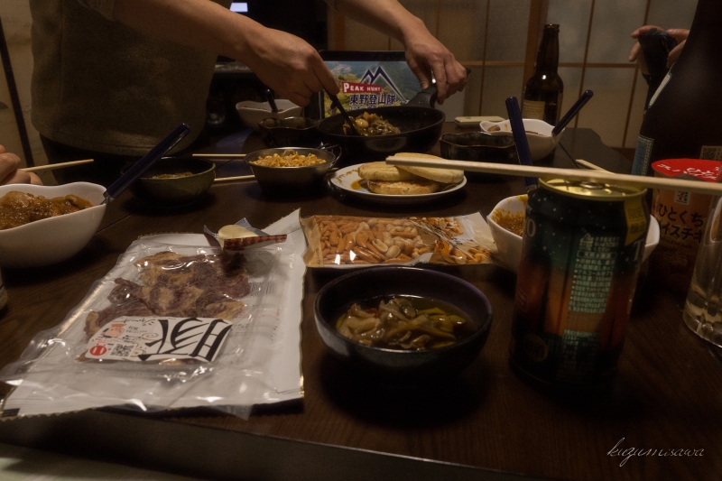酒の飲みながら山のことを語ったり「東野登山隊」を見たり、フランスの「CITY HUNTER」をゲラゲラ笑いながら見たりと思い出深い夜になった。