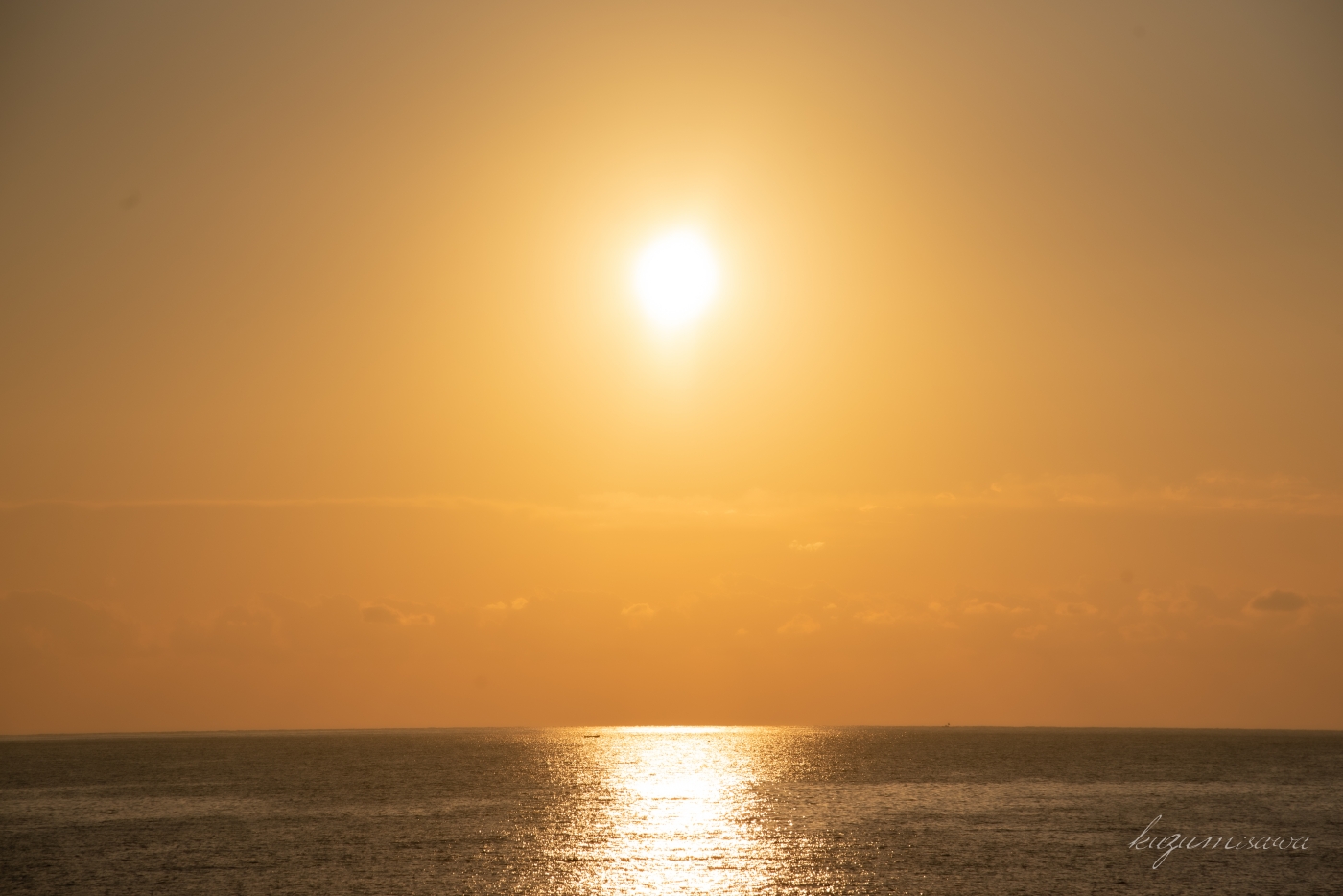 太平洋に登る朝日を眺めながら一日が始まりました。