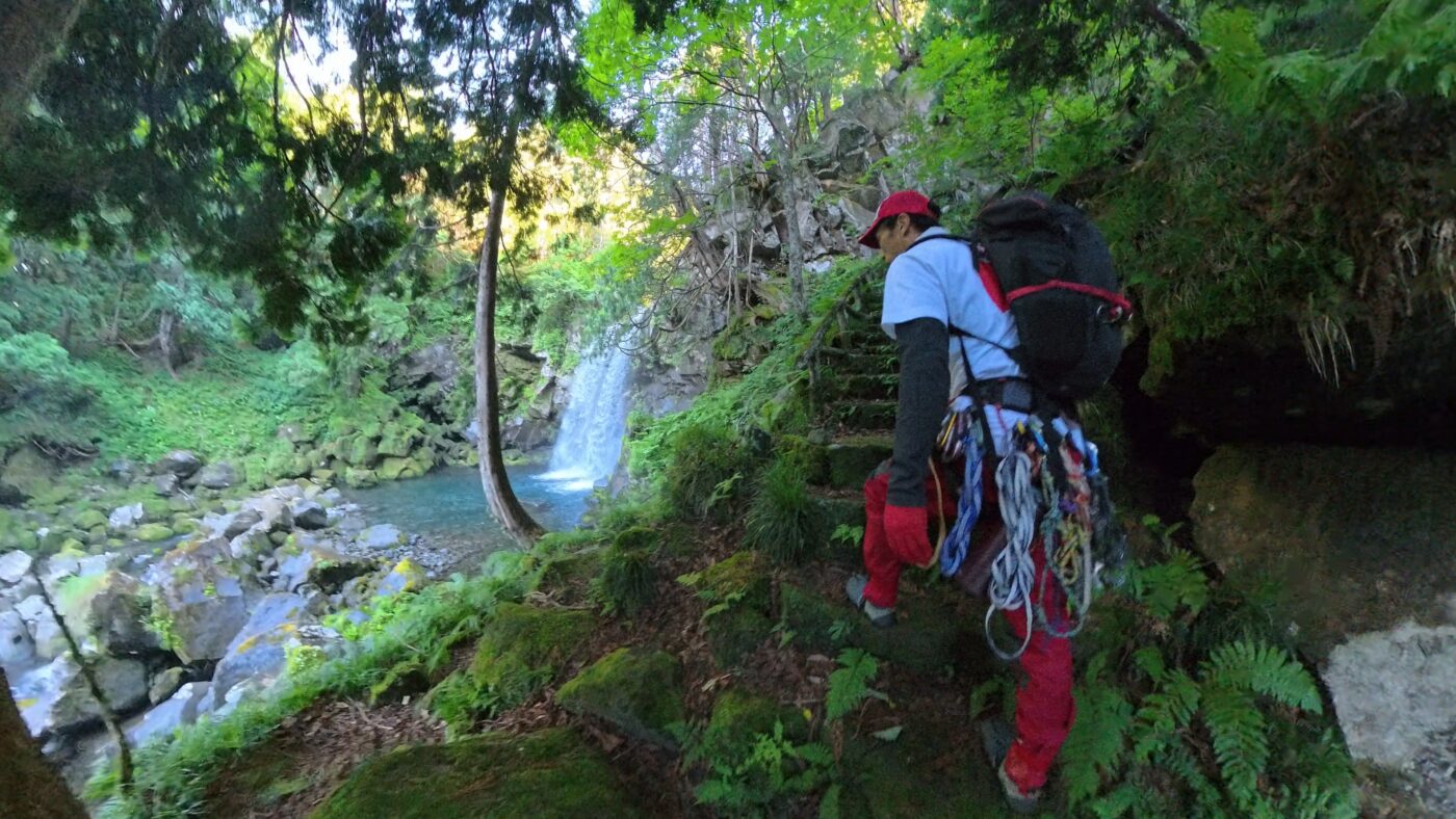 ここまで来るためには下流からの遡行か、もしくは登山道からのヤブ漕ぎで訪瀑することが可能だと思います。