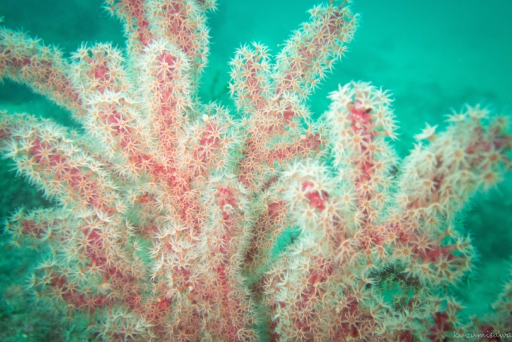 サンゴも美しいですね。海の中では赤色は失われてしまうので、写真でしかこの赤を見ることができません。