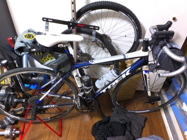 カメラやいざとなった時の輪行バックを積みます